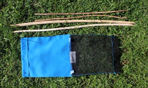 Each target requires 4 sticks. Two strong sticks to use for uprights and two smaller sticks for horizontal supports.
