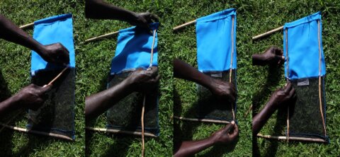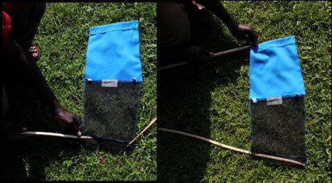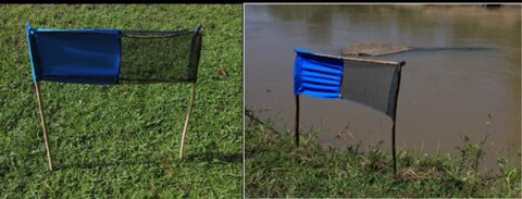 Plant the target upright, firmly pushing the sticks into the soil. The target should face the water, and the area around it cleared of vegetation that may obscure the target. Deploy targets every 50m – 100m along the edge of the river or swamp.
