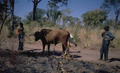 An ox fly round is similar to the traditional man fly round, except that the team comprises 2-3 people with hand nets and an ox. The team walks through the bush, stopping at regular, marked stations where they collect following flies. Most flies will be caught as they land on the ox.