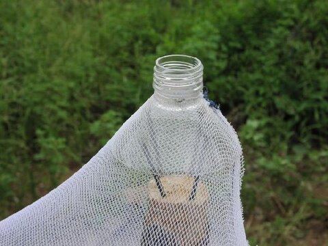 13. Attach the trap to the first pole with wire.
